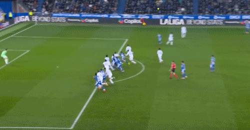 是一个长传球吗?我们前场本来想控制球权,但托尼没碰到,然后从那里出了一脚长传……,说真的,我不知道发生了什么,我甚至没看清是谁进的球,我坐的位置被挡住了。(有人提示:是罗德里戈)